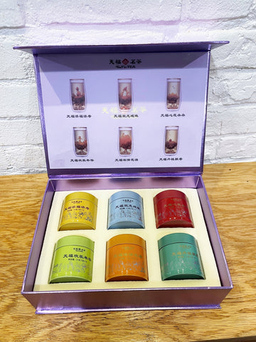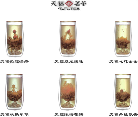 - 18 blooming flower teas - 6 Different styles (3 balls in each container).